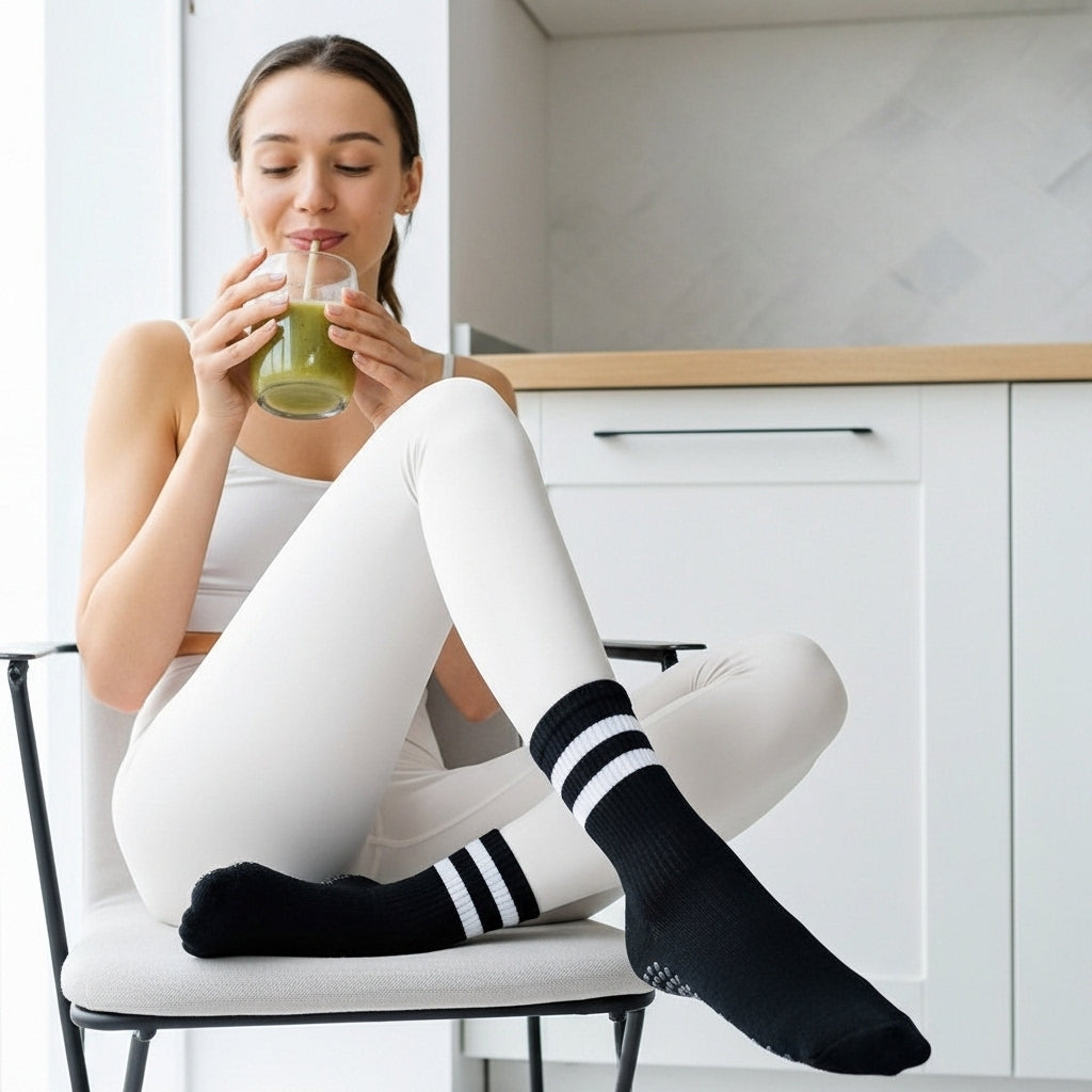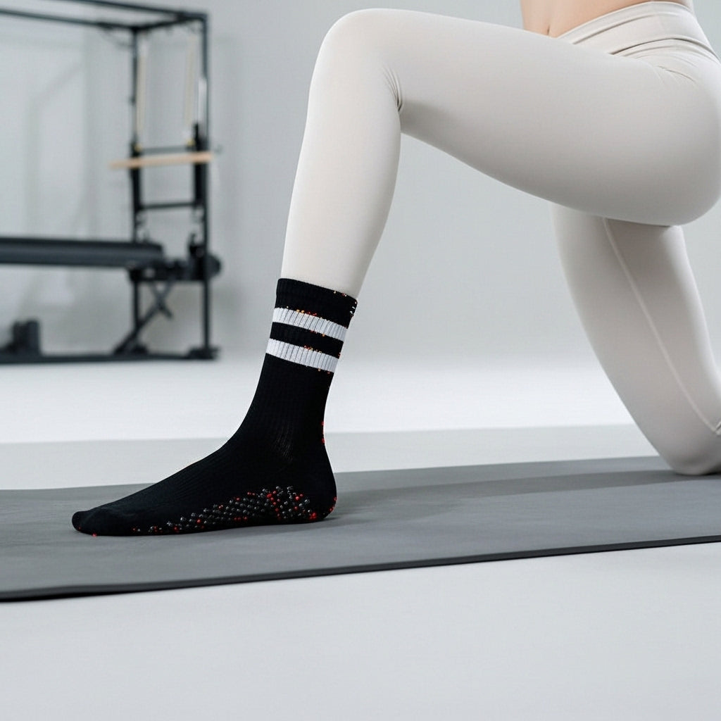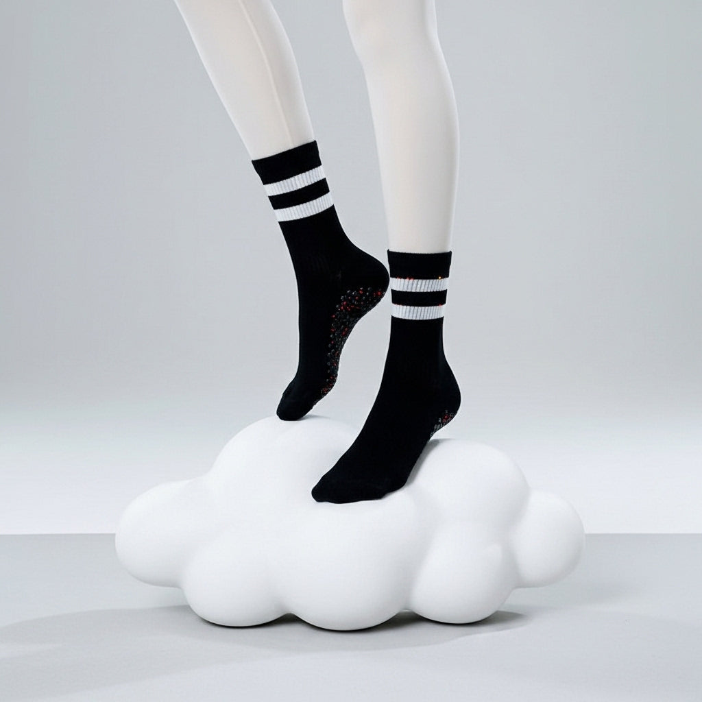 Find your harmony with Yin Yang. Inspired by the ancient philosophy of perfect balance, these classic black and white pilates socks represent the beautiful duality of your practice: the strength (Yang) in every powerful pose and the grace (Yin) in every fluid movement.